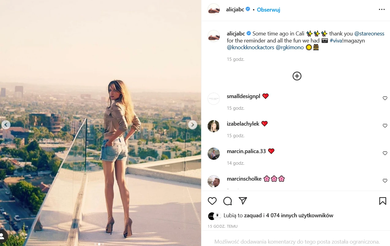 Alicja Bachleda-Curuś od lat jest obecna w polskim show-biznesie. Co jakiś czas przylatuje do Polski z USA i bierze udział w rodzimych produkcjach filmowych. Niedawno na instagramowym koncie 38-latki pojawiła się fotografia w jeansowych szortach, luźnej koszuli oraz obcasach.