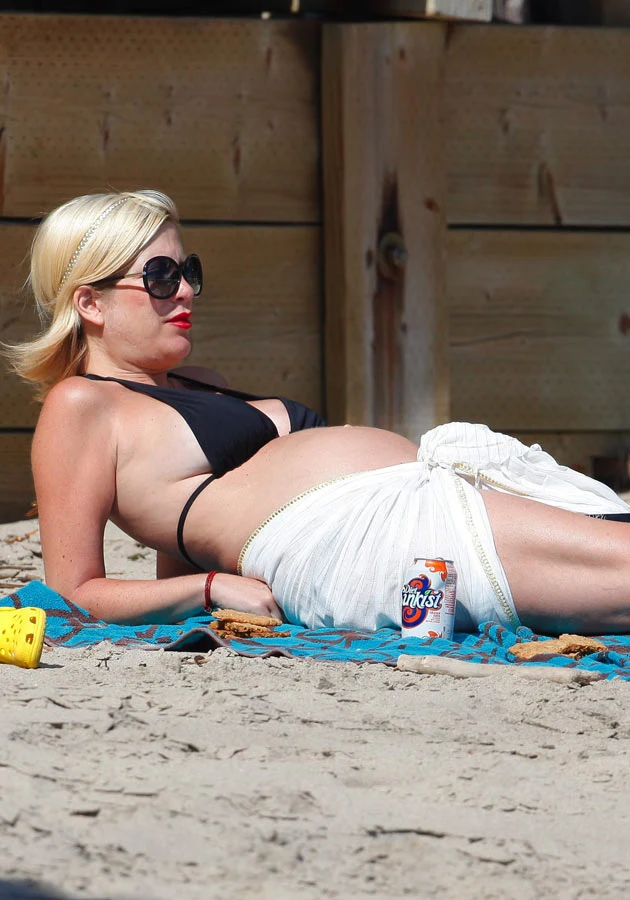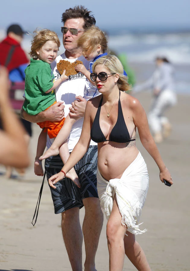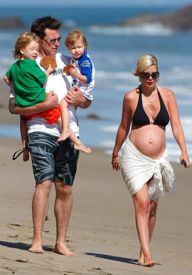 Spodziewająca się trzeciego dziecka 38-letnia gwiazda serialu "Beverly Hills, 90210" amerykańskie święto Memorial Day, upamiętniające zmarłych obywateli służących krajowi w trakcie odbywania służby wojskowej, spędziła na plaży z rodziną - mężem Deanem McDermottem, synem Liamem Aaronem oraz córką Stellą.
