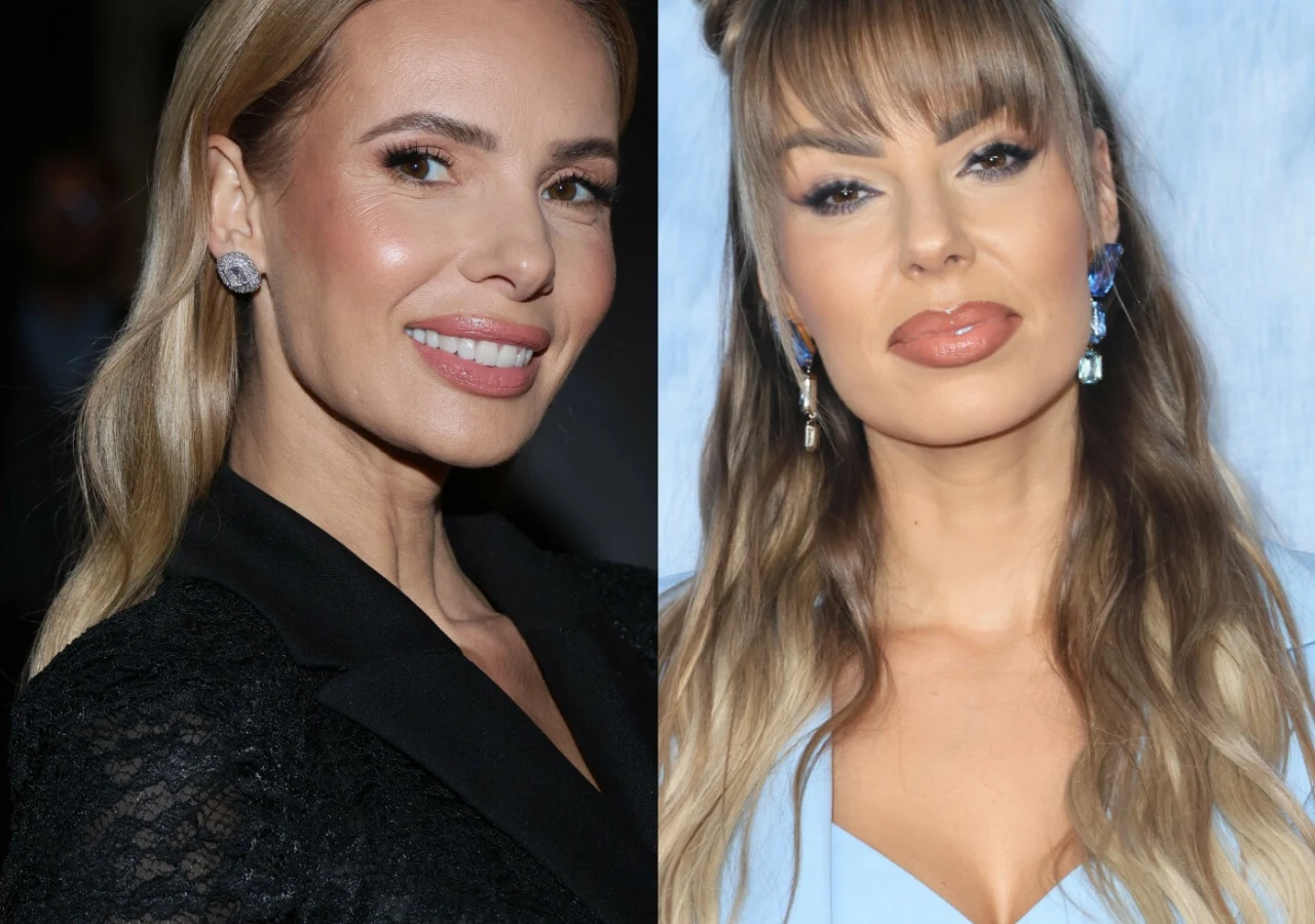 Dwie uśmiechnięte kobiety sfotografowane osobno, zbliżenie na ich twarze, jedna ubrana w czarną marynarkę, druga w jasnoniebieską sukienkę, obie mają starannie ułożone włosy i makijaż.
