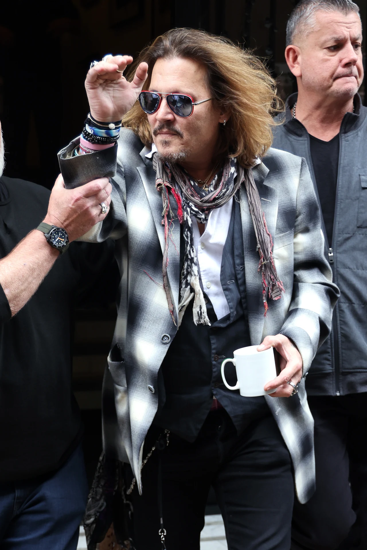 Zdjęcia, które obiegły zagraniczne media, pokazują Deppa w obstawie dwóch ochroniarzy, którzy wyprowadzają go z hotelu. Aktor ubrany jest w marynarkę, czarne jeansy, charakterystyczny szalik oraz duże okulary przeciwsłoneczne. W lewej ręce trzymał biały kubek.
