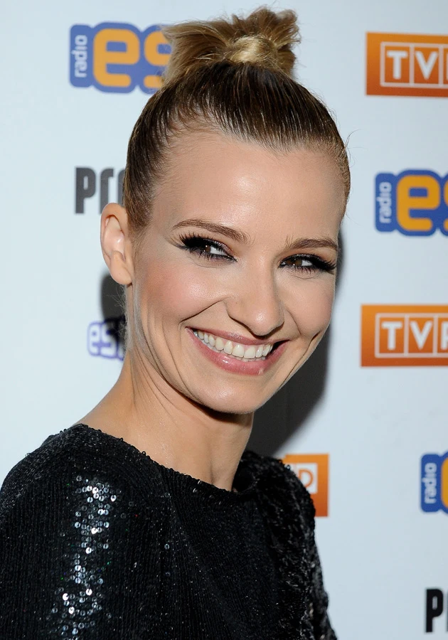 Fryzura Marty Powalowskiej, aktorki znanej z serialu "Prosto w serce", na otwarciu jednego z salonów