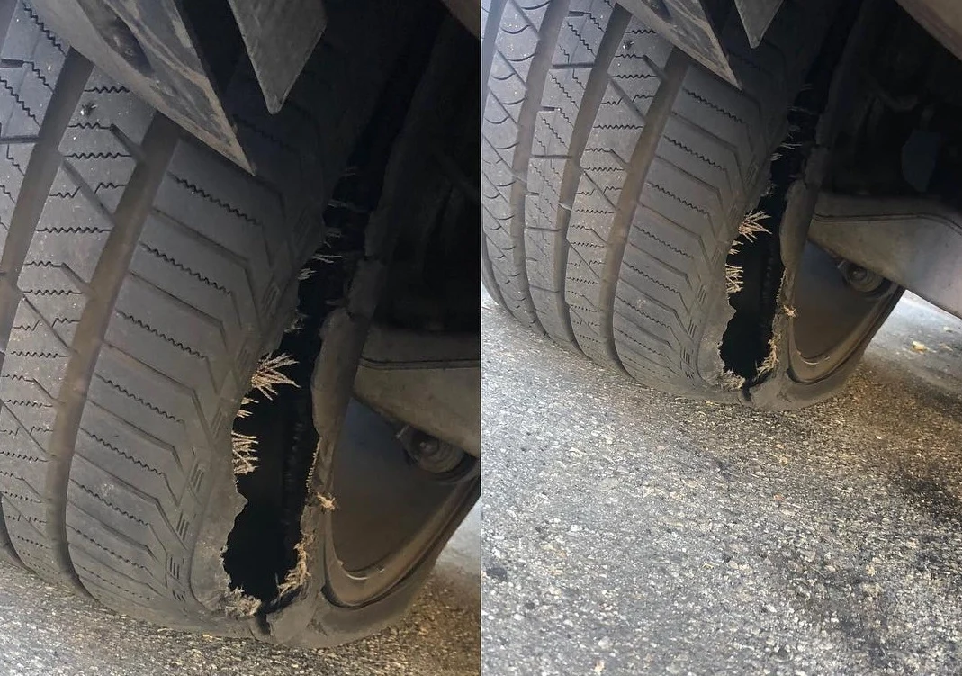 Na dowód zamieściła też zdjęcie zniszczonych opon. Coś okropnego!
