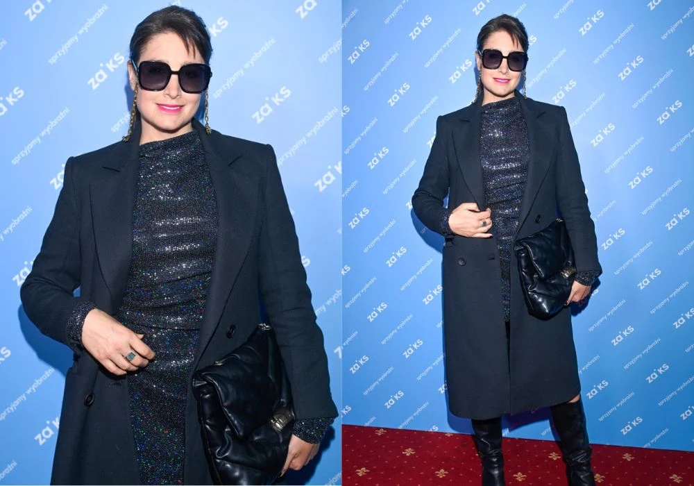 Dawno niewidziana Laura Samojłowicz, ku zdziwieniu fotoreporterów, mimo czerwcowego upału wybrała na tę okazję czarny "total look" złożony z długiego płaszcza, skórzanych kozaków oraz ogromnej kopertówki.