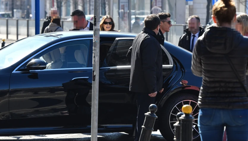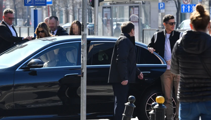 Anna Lewandowska i Robert Lewandowski podjechali na róg Hożej i Marszałkowskiej czarną limuzyną z szoferem. Towarzyszyła im menedżerka i dwóch ochroniarzy, którzy dbali o ich bezpieczeństwo i przeganianie natrętów.