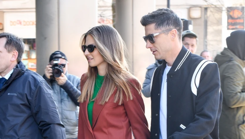 Anna Lewandowska postawiła na stylowy elegancki garnitur oraz wysokie szpilki. Robert Lewandowski zaprezentował się na sportowo: w granatowej kurtce, beżowych spodniach i białych butach.