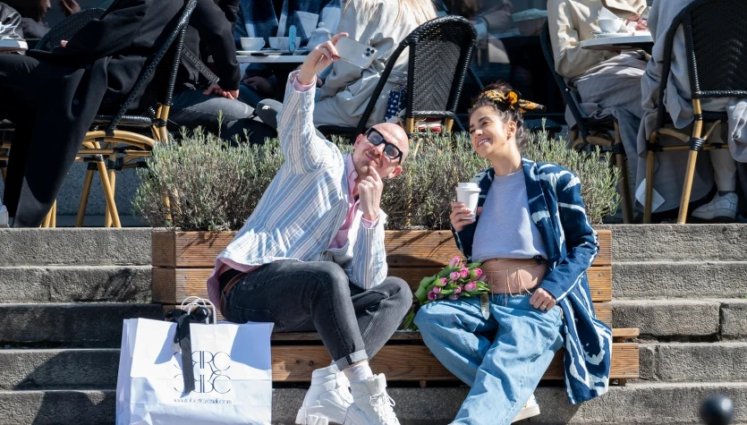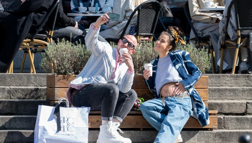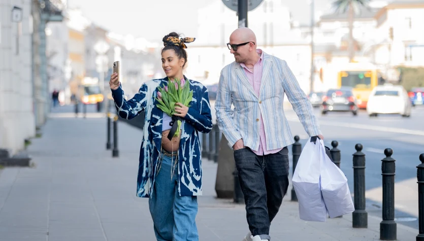 Wspólnie wybierali materiał na suknię ślubną. Nie zabrakło wspólnego selfie na mieście.