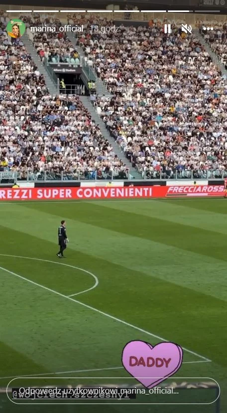 Chłopiec czasami przychodzi razem z Mariną na mecze taty, który gra obecnie we włoskim klubie Juventus. Tym razem wspólnie kibicowali Wojtkowi podczas spotkania na własnym stadionie z Bologną, które - mimo wsparcia bliskich - zakończyło się remisem.