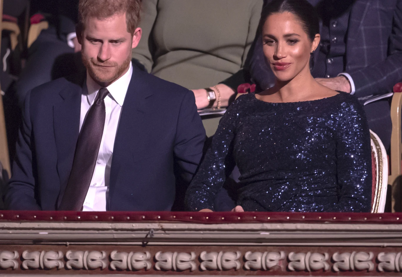 To pierwsze wspólne, oficjalne wyjście małżonków w 2019 roku. Książę i księżna Sussex przybywają po godzinie 10. Tłum wita ich gromkimi brawami. Meghan, która przyzwyczaiła już fanów do swojego zamiłowania do ciemnych barw, zaskakuje kolorową stylizacją. Ma na sobie długi, wiązany, czerwony płaszcz i szpilki w tym samym kolorze.
