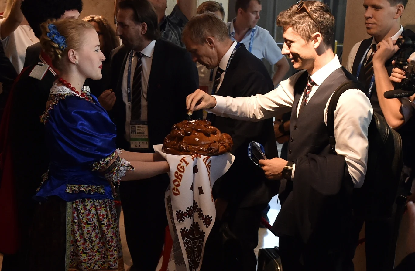 Zawodnicy oraz sztab szkoleniowy witani byli chlebem i solą. Z poczęstunku ochoczo skorzystał kapitan reprezentacji. Z uśmiechem na ustach skosztował chleba. Nie pozostało to niezauważone.