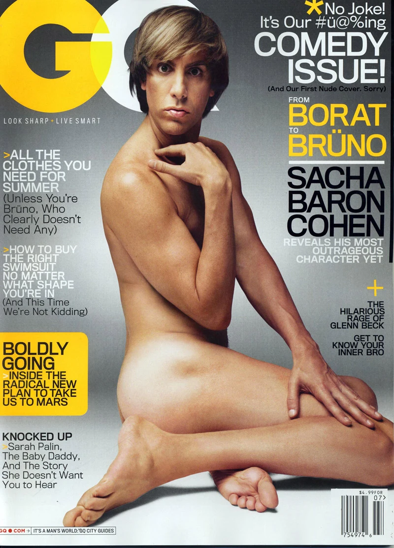 Jak twierdzą szefowie amerykańskiego magazynu, Cohen jest pierwszą osobą, która pojawiła się zupełnie nago na jego okładce. Niewiele więcej niż on miała na sobie Jennifer Aniston, która w jego styczniowym wydaniu wystąpiła jedynie w krawacie.