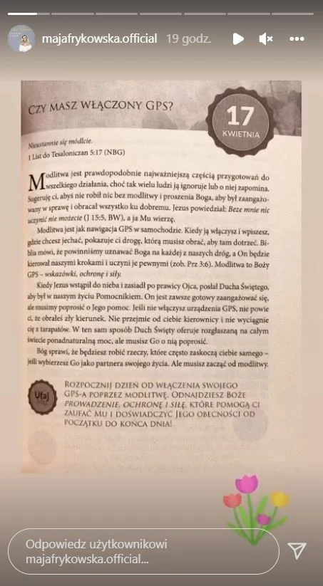 Po latach Agnieszka zdecydowała się zmienić imię na Maja i ogłosiła swoje nawrócenie w mediach społecznościowych, gdzie jest bardzo aktywna. Praktycznie w każdym wpisie podkreśla to, że jest wierzącą chrześcijanką. Nie inaczej było z okazji Wielkanocy.