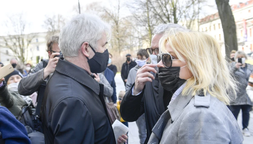 "Dzisiaj płaczę razem z Ewą, która zdała egzamin z miłości do męża. Była dla niego całym westchnieniem i za każdym razem to dla niej śpiewał: "Bo jesteś ty, zaczynasz ze mną dzień, bo jesteś wciąż, gdy zaczyna się noc. Ja wszystko mam, cóż więcej mógłbym chcieć, bo jesteś Ty i zawsze tu bądź". Ewuniu, dzisiaj to Twoja droga krzyżowa, ale pamiętaj, że na tej twojej Golgocie, choć z boku - jesteśmy z Tobą. Dziś Krzysztof dziękuje Ci za tę wspólną życiową podróż, która trwała od chwili poznania w Chicago, aż 39 lat. Choć Krzysztof nie wystąpi już na żywo, nie udzieli wywiadu, nie zadzwoni i nie odbierze telefonu i nie przytuli swoich najbliższych, będzie obecny jeszcze bardziej niż za życia" - powiedział biskup Długosz. Na twarzy Ewy Krawczyk, mimo założonej maseczki, wyraź nie było widać wielkie emocje i wzruszenie. Kiwała głową ze zrozumieniem, reagując na słowa przyjaciela rodziny.
