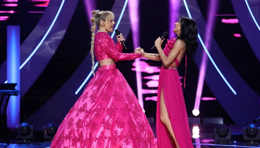 Jedną z niespodzianek wieczoru był duet Doda i Justyna Steczkowska. Przypomnijmy, gwiazdy latami były skłócone, ale postanowiły dać przykład innym artystom i pogodziły się. Zwieńczeniem ich przełomowej decyzji był występ w Sopocie, gdzie wspólnie zaśpiewały "Znak pokoju" (posłuchaj!). Obie wokalistki wystąpiły w różowych kreacjach. Rabczewska prezentowała się wręcz bajkowo.