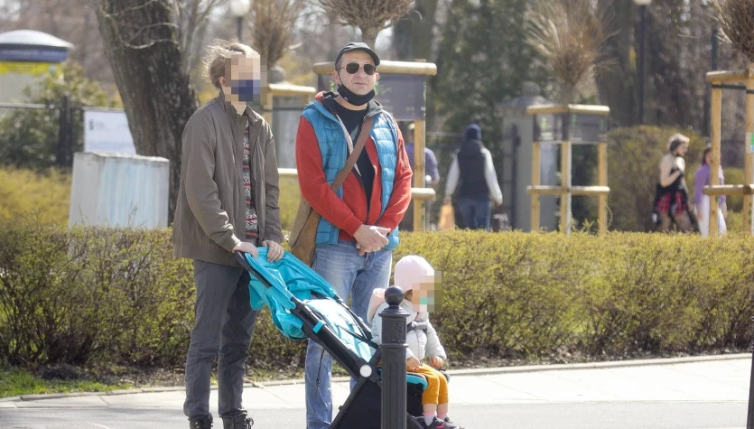 Robert Górski na spacerze z dziećmi