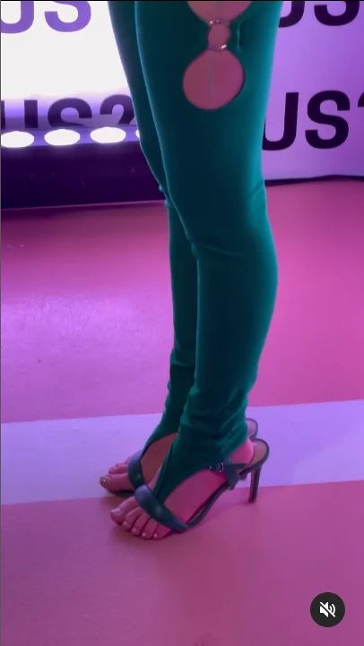 Roksana Węgiel miała na sobie coś na kształt zielonego kombinezonu, który miał duże wycięcia na udach oraz przy dekolcie. Jak na 17-latkę jest to dość odważny strój. Okazuje się jednak, że to nie kombinezon przykuł największą uwagę, a buty.