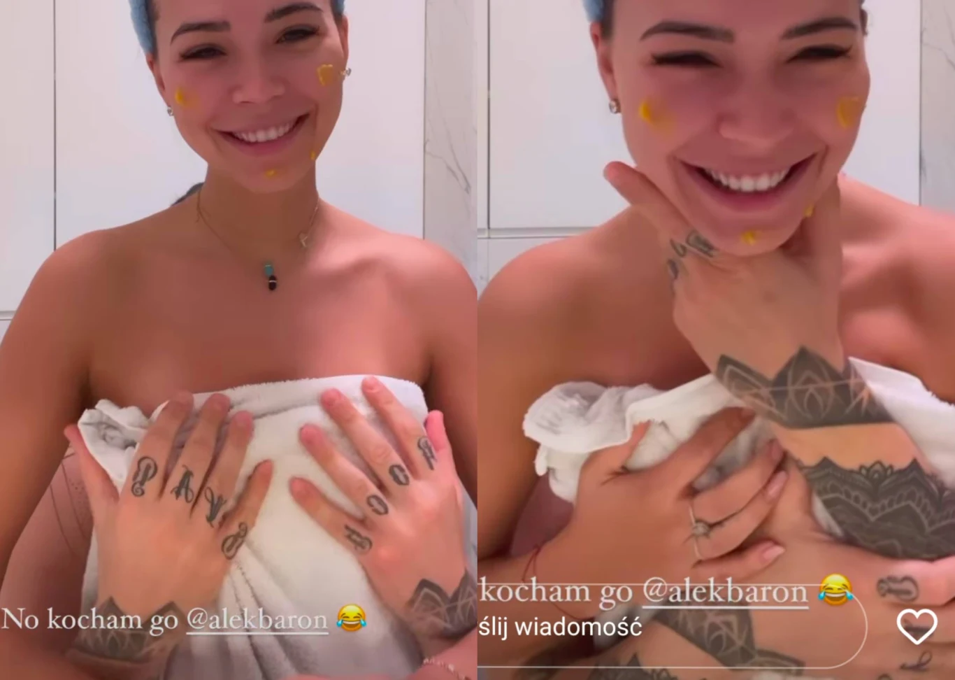 W sobotni poranek Sandra po raz kolejny chciała przypomnieć swoim obserwatorom o miłości do Barona. Opublikowała pikantne nagranie ze swojej porannej rutyny. Owinięta w ręcznik stała przed lustrem i nakładała sobie na twarz krem.