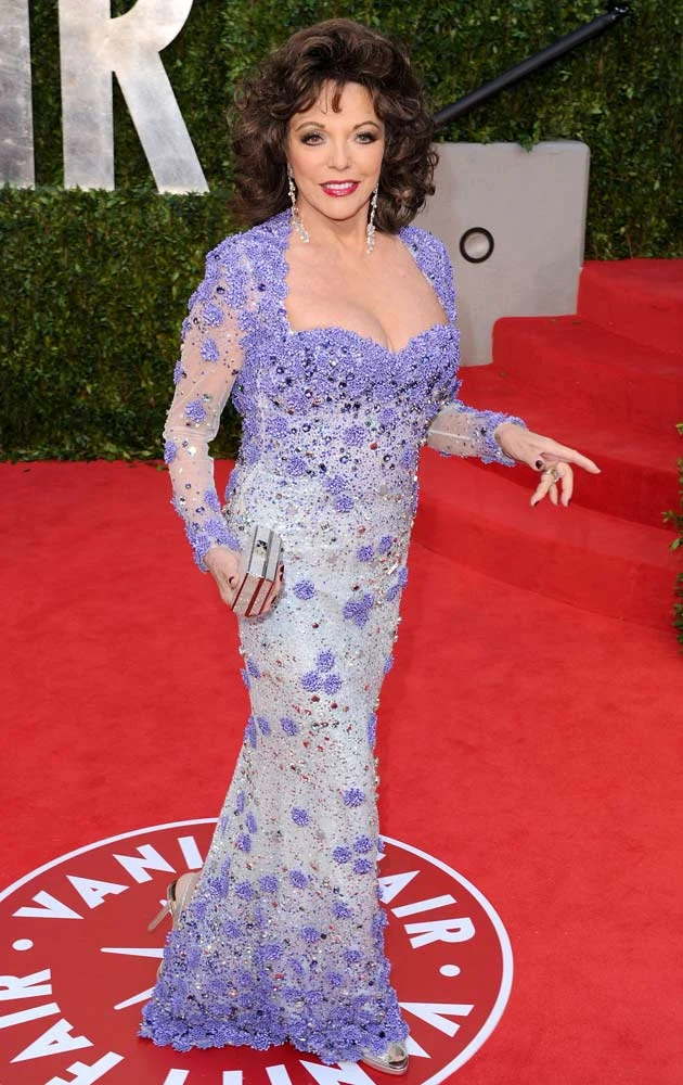 Na niedzielnej gali 77-letnia gwiazda "Dynastii" zaprezentowała się w turkusowo-lawendowej kreacji projektu Georgesa Hobeika. Piękna suknia okazała się dla Collins zbyt obcisła.