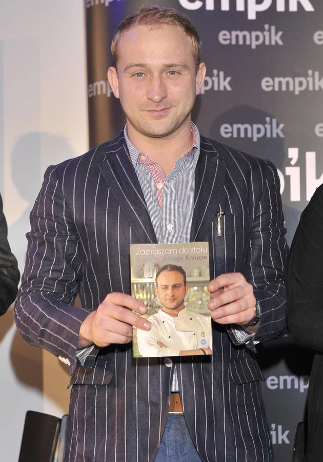 "Kuchnia Jerzego Knappe. Zapraszam do stołu" to książka kucharza z serialu "Przepis na życie", w którego wciela się Borys Szyc. Popularny aktor nową publikację promował w jednej z warszawskich księgarń.