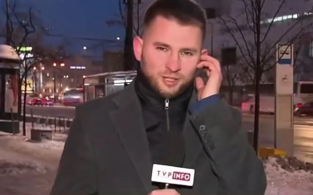 Podczas porannego wydania pogody, dziennikarz TVP Info chciał przestrzec widzów stacji przed oblodzonymi chodnikami. W tym celu nie tylko wystąpił tuż przed przystankiem autobusowym, ale także ustawił się w pobliżu wyjątkowo zaśnieżonej i zamarzniętej ścieżki. Jakby tego było mało, los chciał, że akurat przechodził tamtędy mężczyzna, który dziwnym trafem poślizgnął się i pokracznie upadł na ziemię.