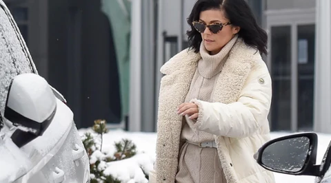 Katarzyna Cichopek wystrojona jak śnieżynka wychodzi z TVP